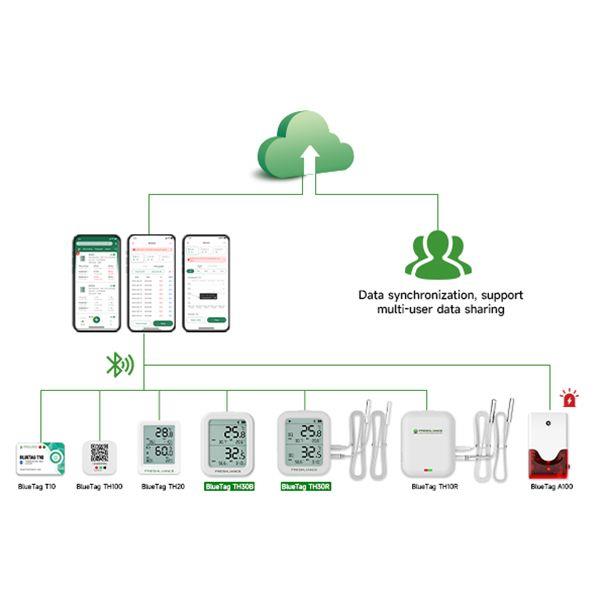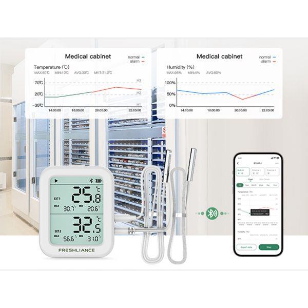 BlueTag TH30 is a multi-use temperature and humidity data logger based on Bluetooth wireless communication technology, convenient for users to read and get the report by APP. The device can be optionally set with one or two external probes. It is ideal in freezer, medicine cabinet, wine cellar, warehouse, greenhouse, laboratory, supermarket, incubator, refrigerator car and other scenarios where accessibility and mobility are crucial.